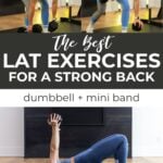 Build overall strength and relieve back pain with these 9 lat exercises designed to target the largest muscle in your upper body. This roundup is perfect for women looking to build core and upper-body strength, with or without equipment. You’ll find a mix of dumbbell and bodyweight exercises that help build lat and core strength, relieve back pain, improve upper-body endurance and functional power.