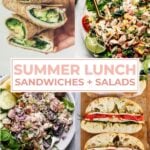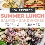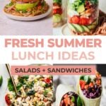 PDF download of summer lunch ideas round up post including high protein salads, sandwiches and wraps.